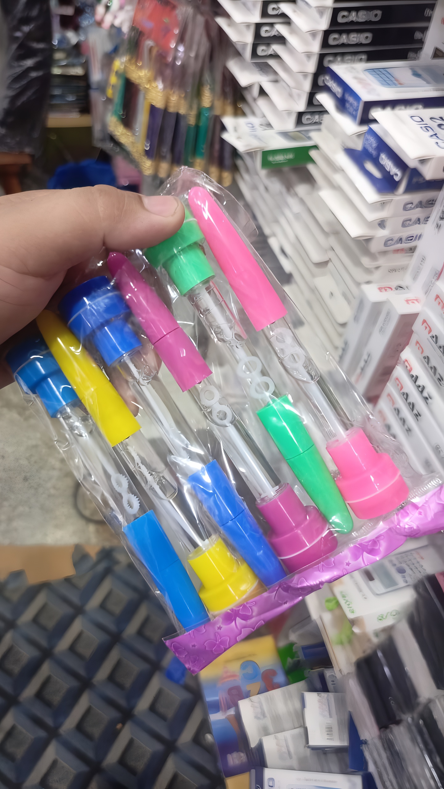 4-in-1 multifunctional pen: writing pen, stamp, bubble container, and light Includes fun bubble container with red light feature Great for kids’ arts and crafts, school projects, and playtime Imported and made with premium-quality materials for durability Random color will be deliver Trending and hot-selling pen, ideal as a gift or party favor Perfect for both entertainment and creative learning