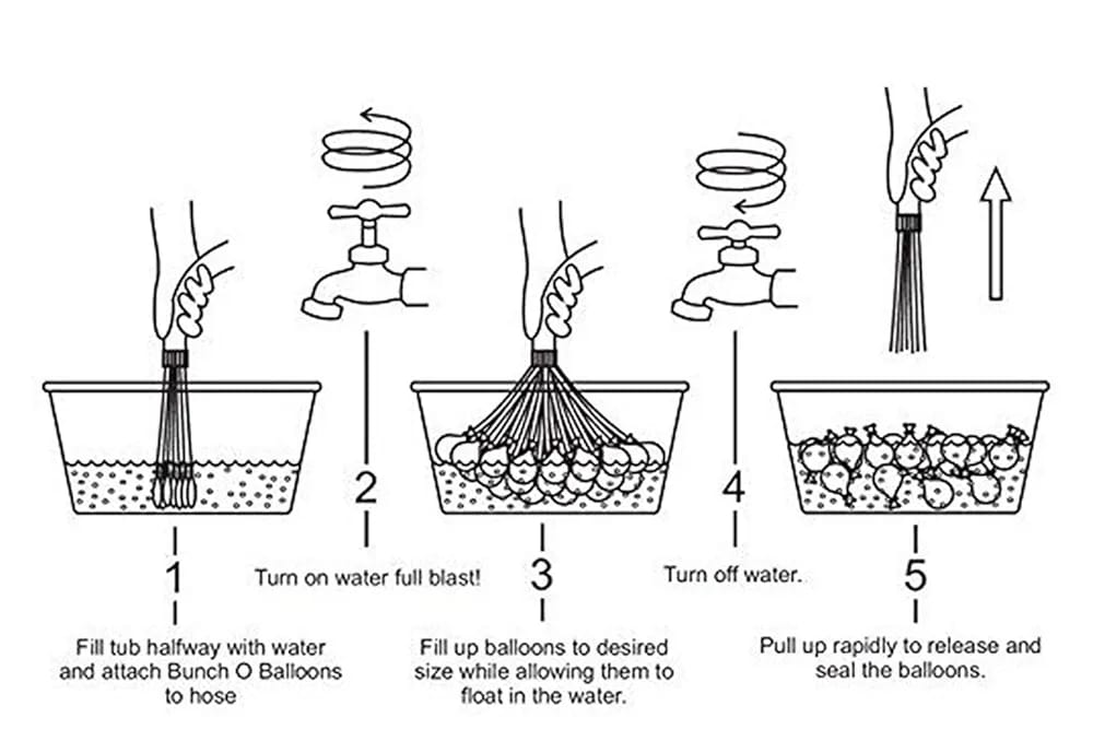 Simply attach the bunch to the universal adapter, connect it to your tap, fill, and shake gently — the balloons will seal automatically, saving time, effort, and water. Whether it's a long-distance throwing competition or a water balloon relay race, this pack is a must-have for creating unforgettable moments.